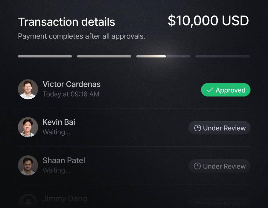 Implement complex approval chains that match your company's governance. Require multiple team members to sign off on transfers.